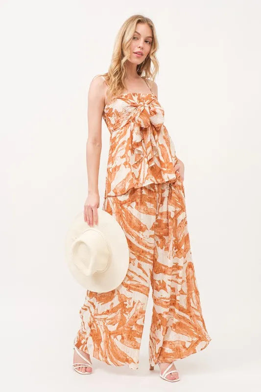 And The Why Smocked Tied Babydoll Abstract Print Top