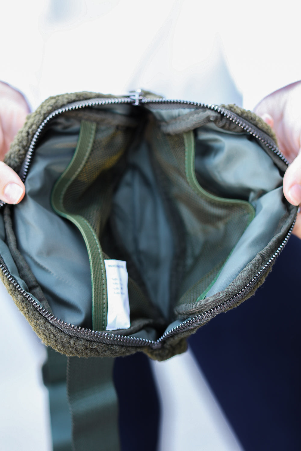 Dark Green Sherpa Zipper Buckle Belt Sling
