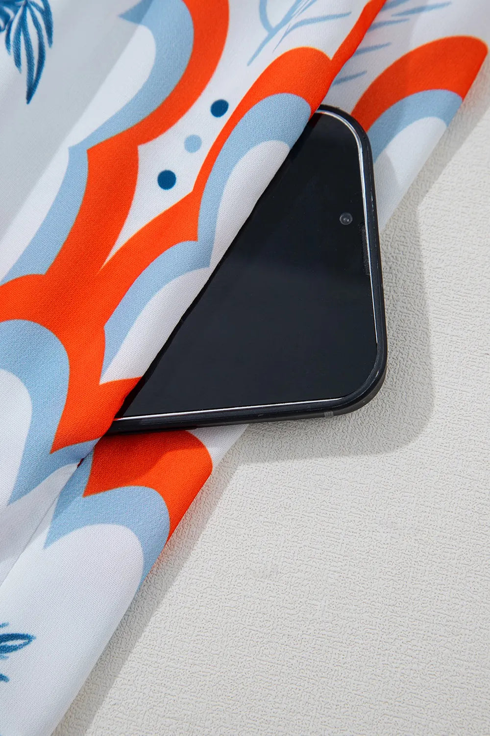 Contrast Palm Tree Printed Short Sleeve Flowy Dress
