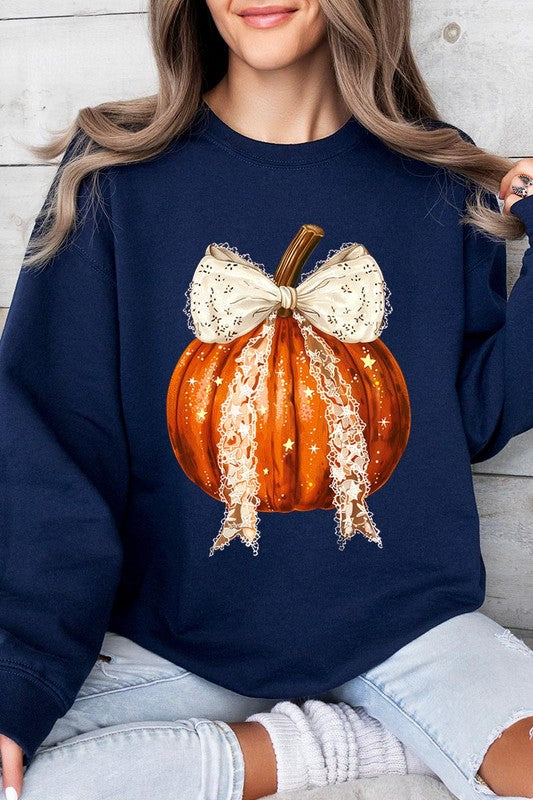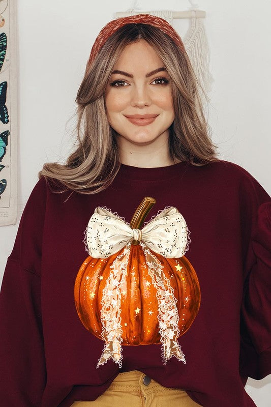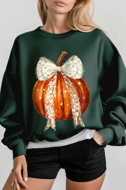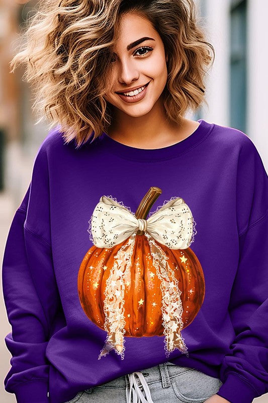 Coquette bow Halloween Pumpkin Graphic Fleece Sweatshirts.