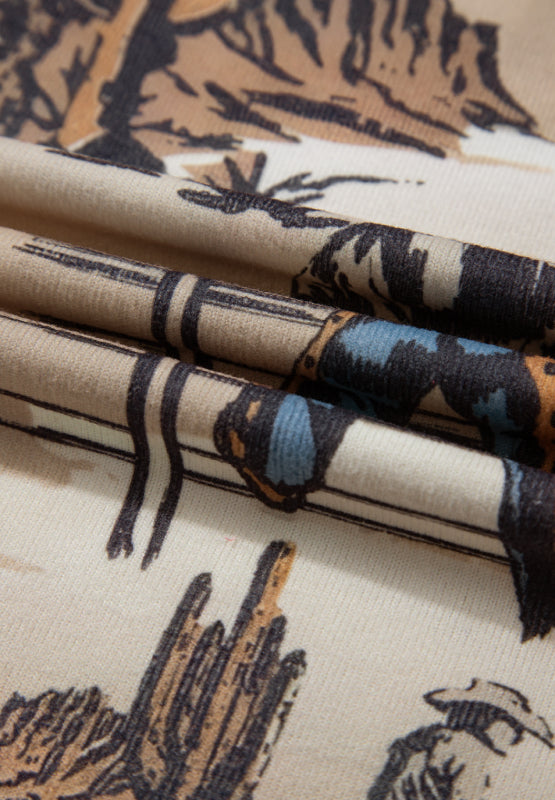 Cowboy Print Round Neck Short Sleeve T Shirt