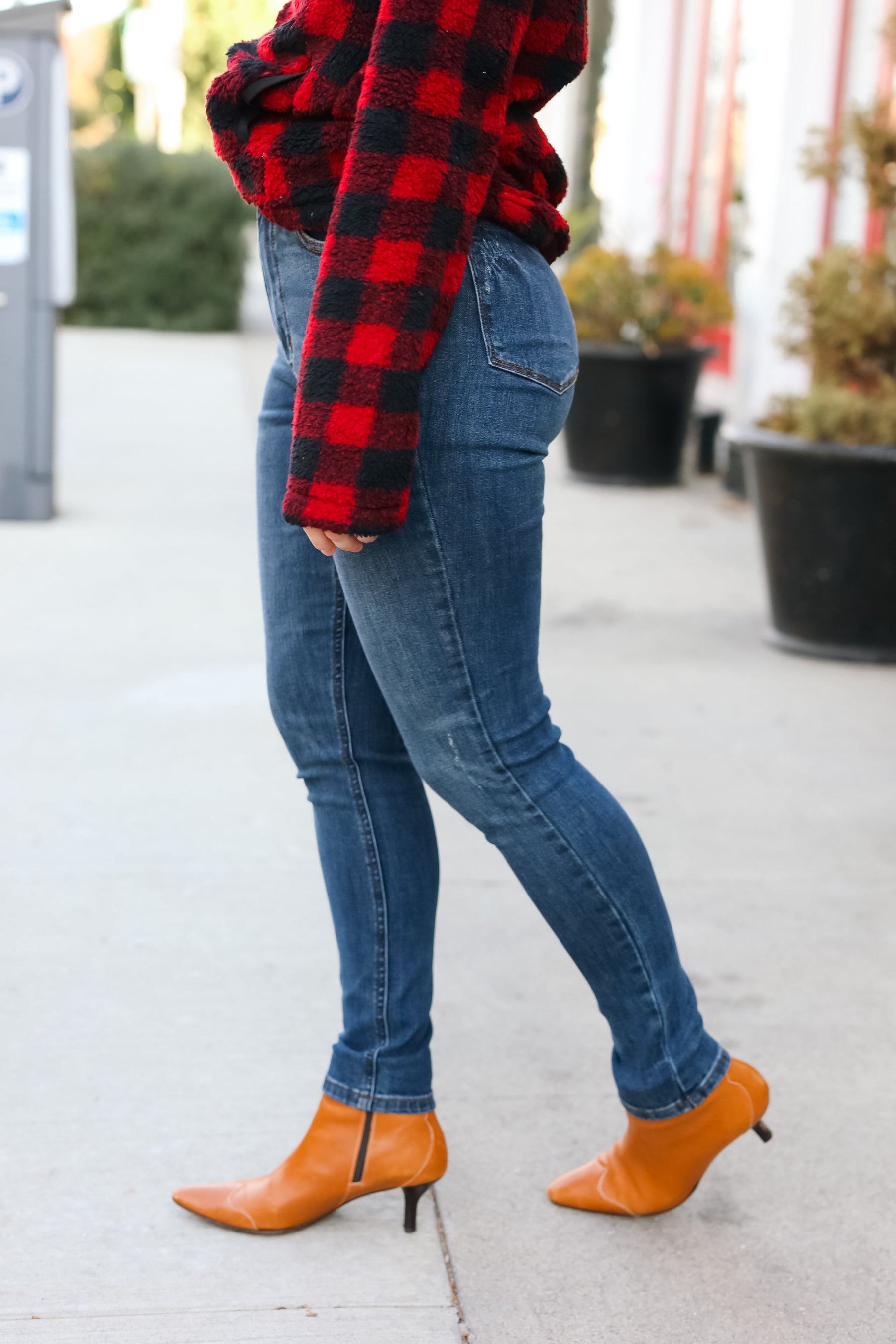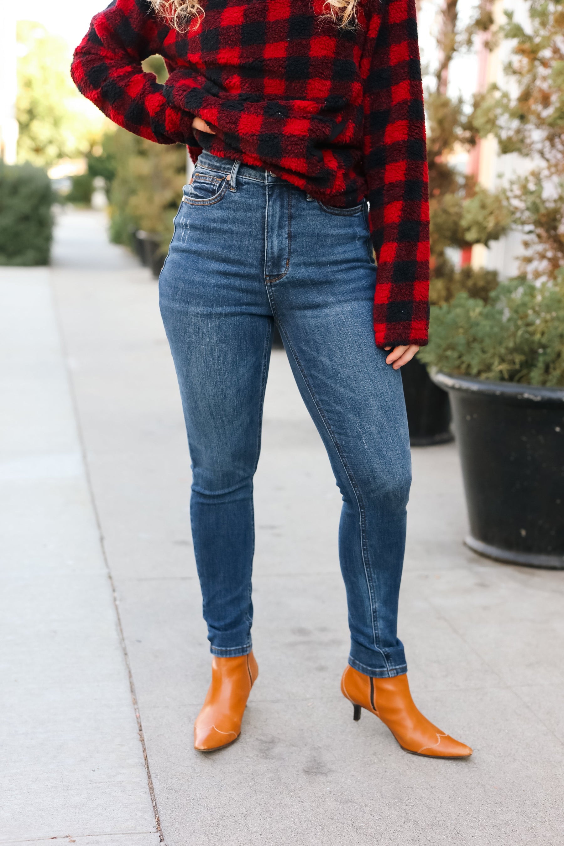 Get ready for winter and stylish layering with these high waist skinny fit dark blue denim jeans. Functional front and back pockets complete these flattering jeans with plenty of stretch. These jeans the perfect piece to style any outfit around.