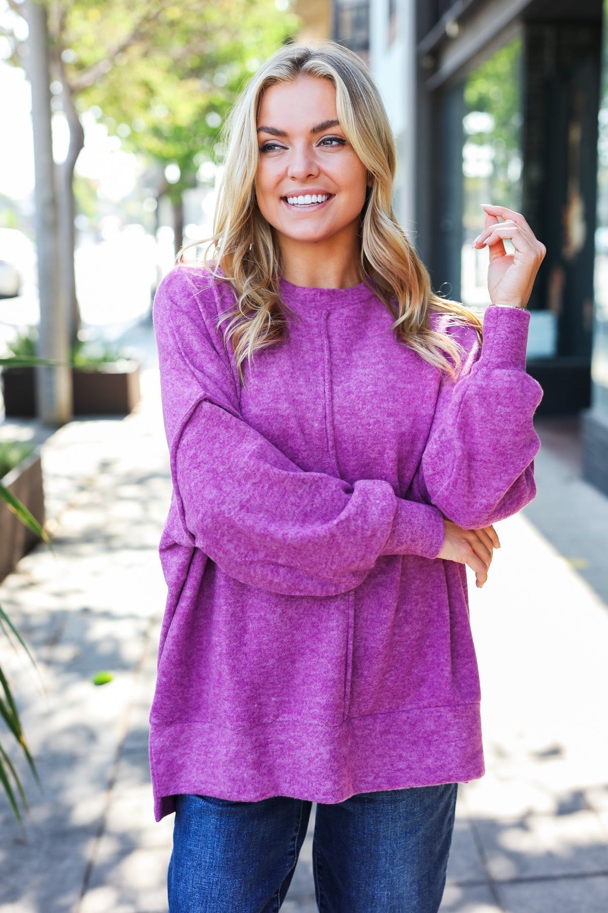 Sublime Plum Exposed Seam Brushed Melange Sweater