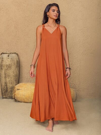 Ruched Twisted Back Sleeveless Maxi Cami Dress