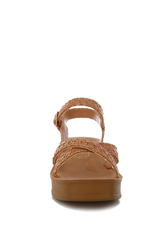 If you're looking for a versatile pair of footwear to take you through 9-5 and beyond, these wedges are just the perfect pick. Featuring criss cross straps with woven details all over, they make a stylish addition to your everyday looks. The comfortable cushion insole makes them suitable for day long wear while the pin buckle fastening adds to the convenience.