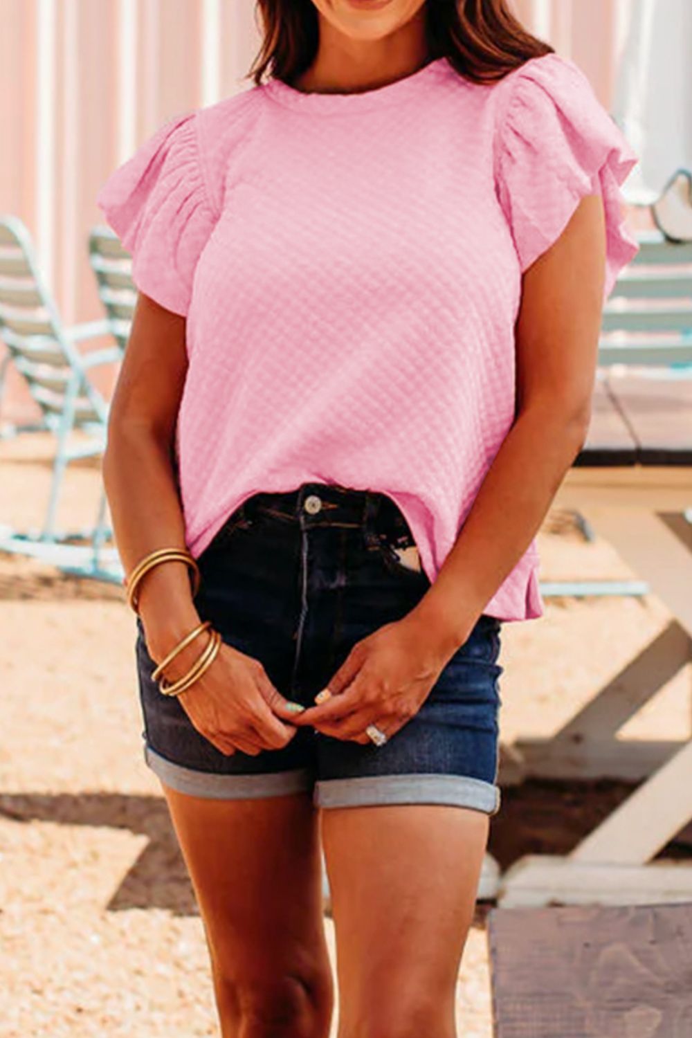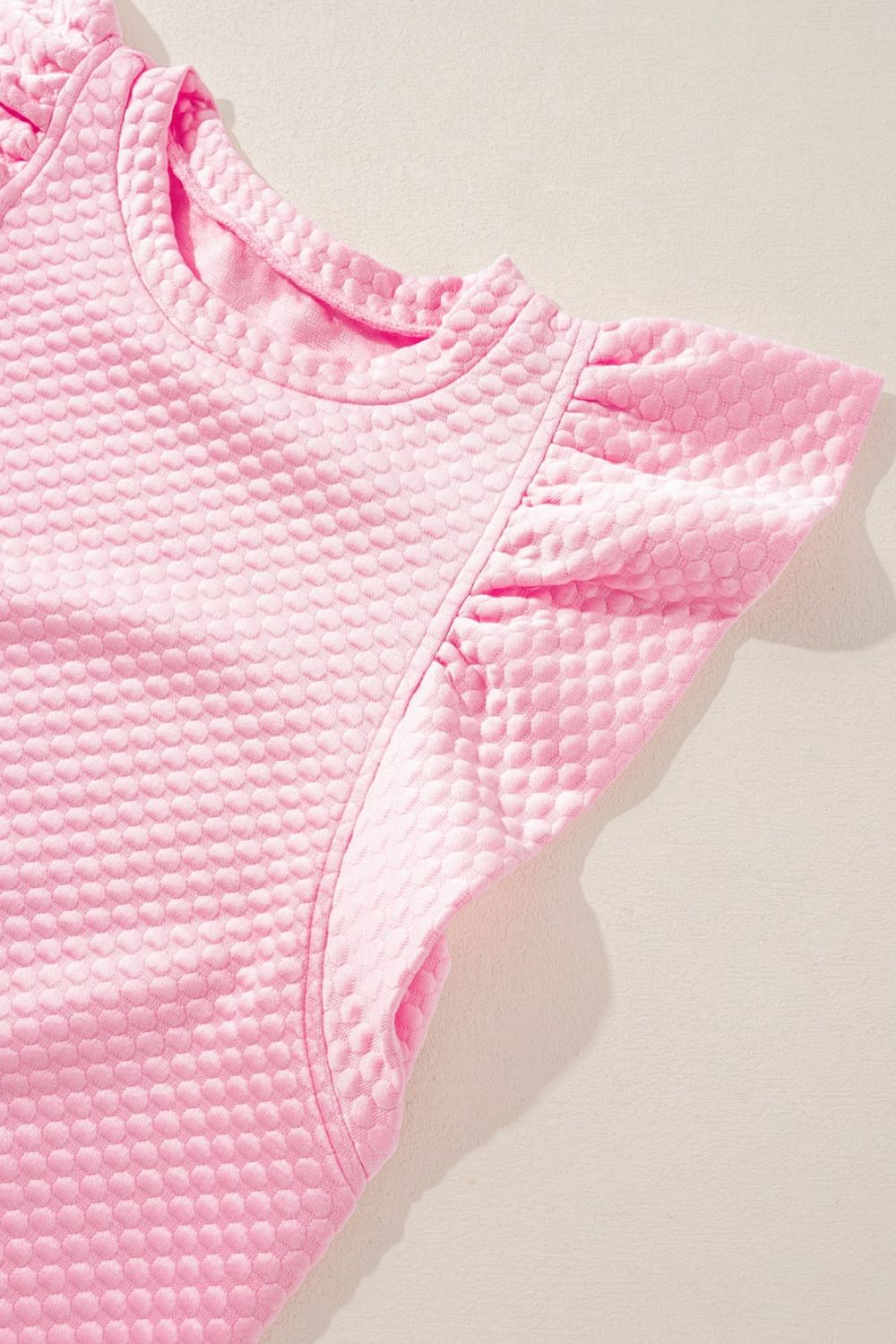 Textured Ruffle Cap Sleeve Top