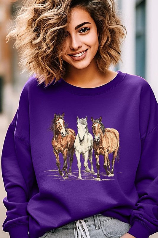 Three Horses Western Graphic Plus Sweatshirt. **PLUS SIZE**