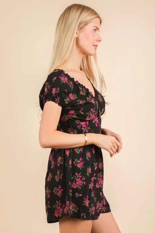 The Floral Printed Ruffle Romper is a chic and feminine choice for your summer wardrobe. The floral print adds a touch of freshness and charm, perfect for those warm days. The ruffle detailing adds a flirty and playful element to the romper. Its lightweight fabric makes it comfortable and breezy to wear all day long. Pair it with sandals for a casual daytime look, or dress it up with heels for a night out. This romper is an easy and stylish option for any summer occasion!